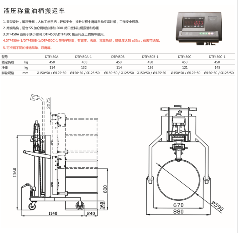 手動液壓油桶搬運車DTF450A