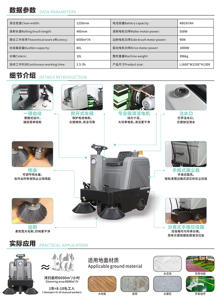 T-1250A駕駛式掃地機